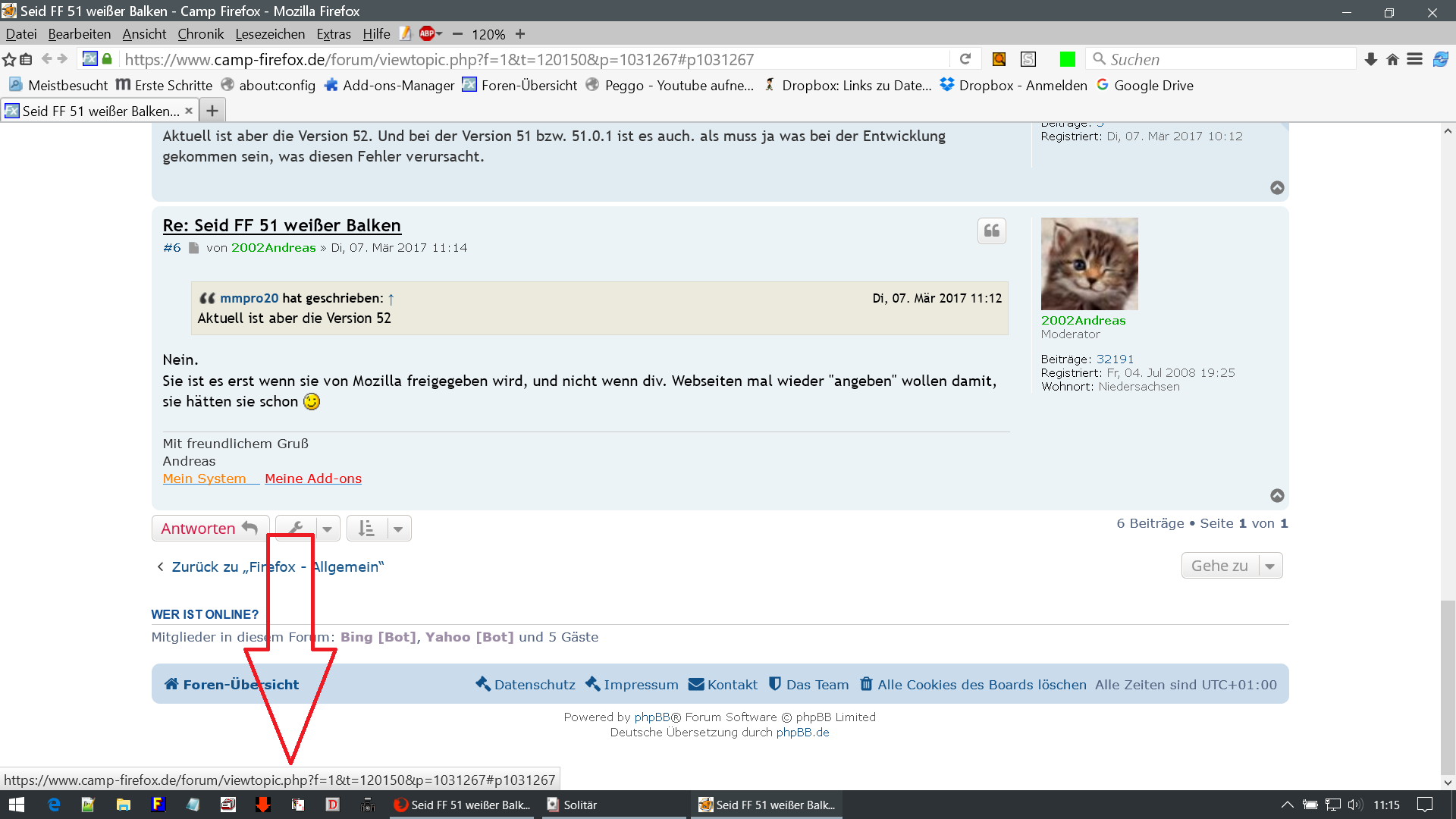 Seid Firefox 51 habe ich auch manchen Seiten links unten einen weißen Balken, wo man sieht was er läd, bzw. welche Seite.