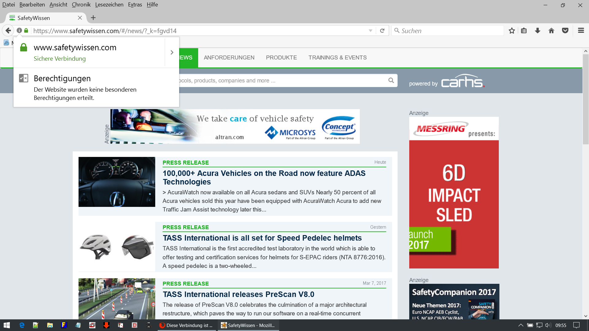 http://www.safetywissen.com verwendet ein ungültiges Sicherheitszertifikat. Dem Zertifikat wird nicht vertraut, weil das Aussteller-Zertifikat unbekannt ist. Der Server sendet eventuell nicht die richtigen Zwischen-Zertifikate. Eventuell muss ein zusätzliches Stammzertifikat importiert werden.