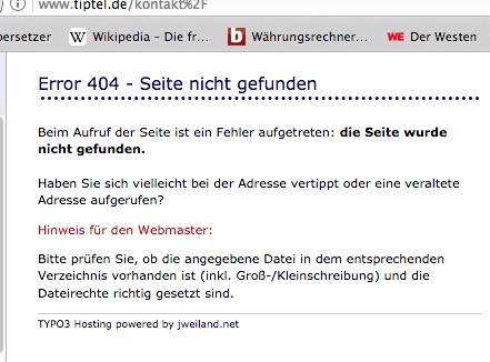 Wenn ich auf irgendeiner Seite ein Link klicke, dann gibt es Fehlermeldungen.