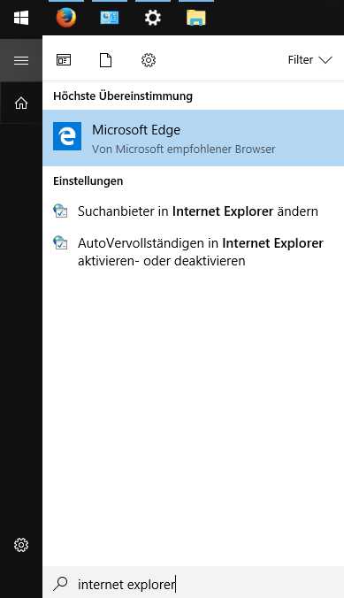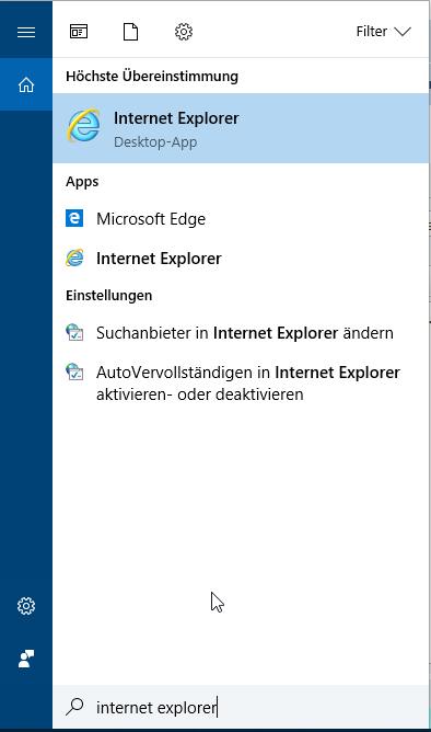 • Also mein Suchfeld liegt eigentlich direkt neben dem Windows-Symbol und das war hier auch schon immer so (Win10). Und der IE wird schon gefunden, wenn ich da nur "Int" eingebe. Was mich verwundert, weil der Edge installiert ist. Muss den IE mal deinstallieren. Falls das geht...