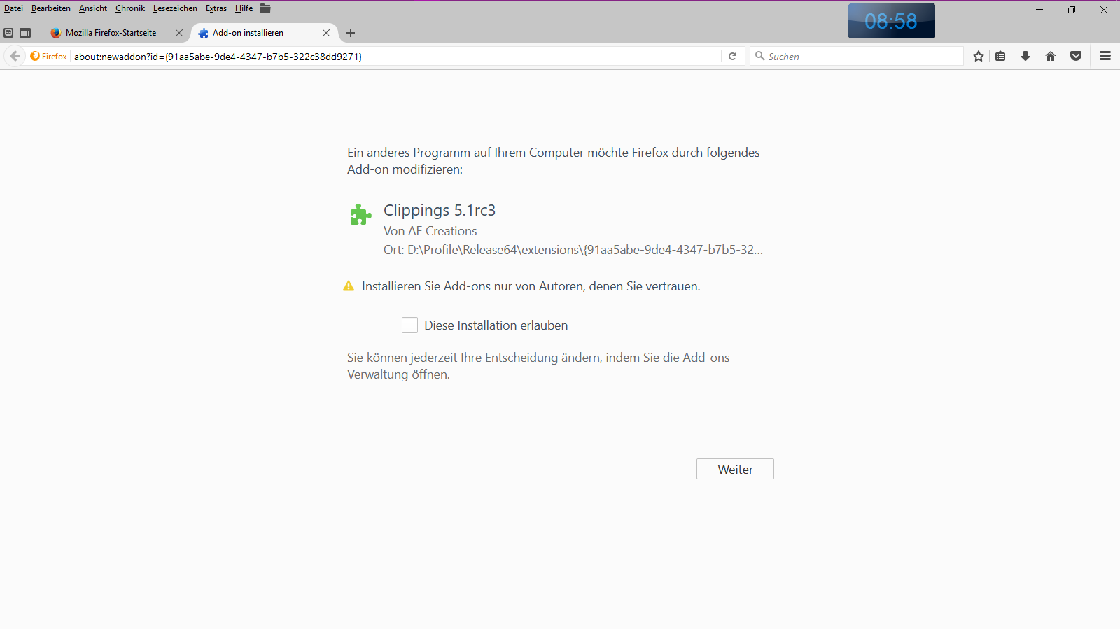 Firefox ( oder Fake ) will etwas instalieren
