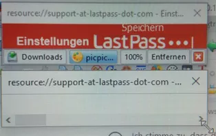 Wenn ich im Lastpass-Menu -Einstellungen- aufrufe, wird das dazu gehörende Fenster oben links in der Ecke geöffnet.