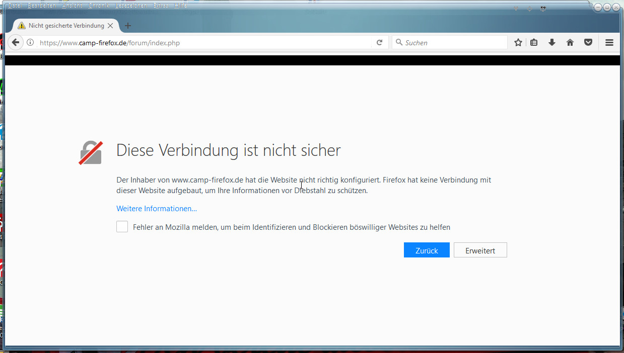 Mit Chrome, MS Edge, Vivaldi oder dem IE gibt es keine Probleme. Nur der FF weigert sich standhaft.