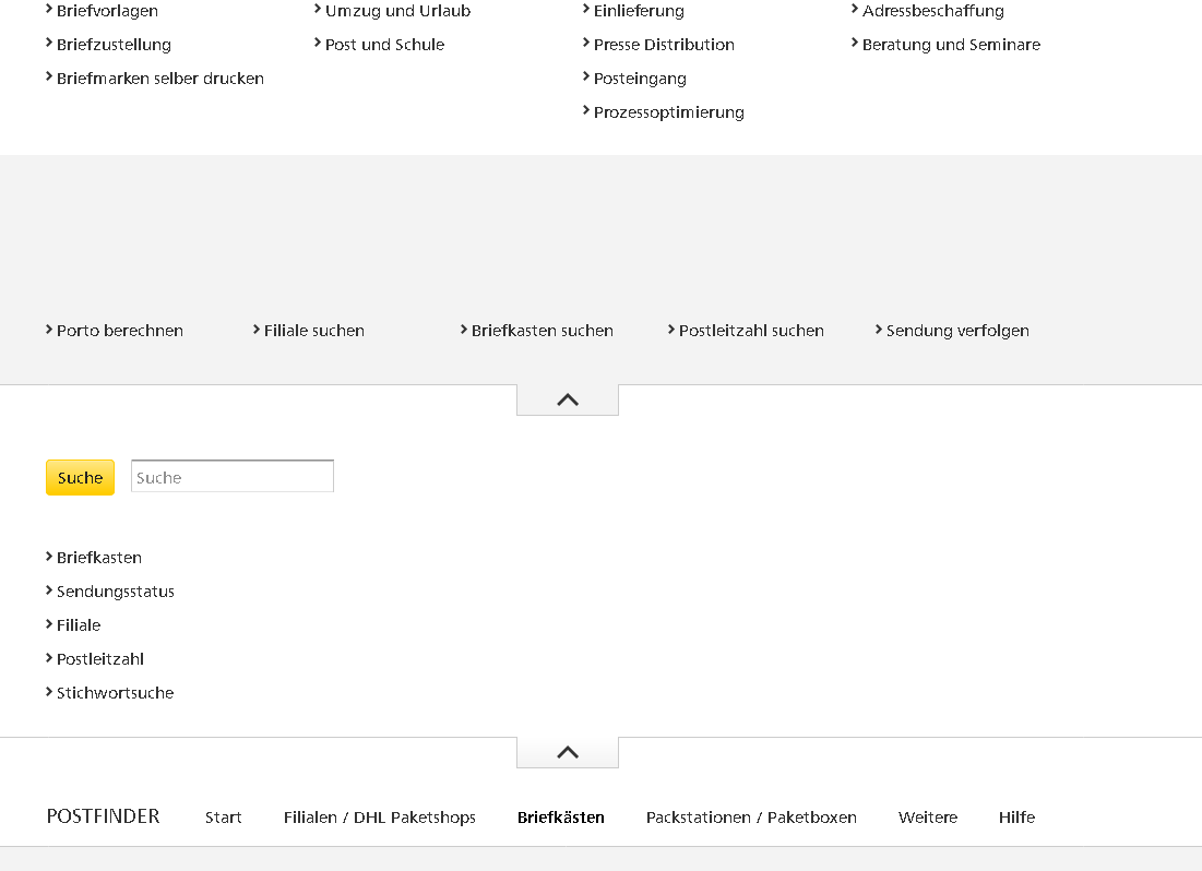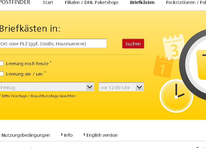 Möchte ich mir über die Seite der DPAG (oben rechts im Suchfenster auf Briefkästen klicken) die Lage der Briefkästen anzeigen lassen, sieht es so aus, als würde etwas mit JavaScript nicht stimmen. Essieht dann so aus: