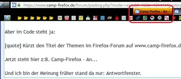 Früher war das nicht so. Ich habe dieses Script selbst lange genutzt, eben weil früher Camp Firefox - Titel des Threads im Tab stand. Warum das im Antwortfenster immer noch so ist oder ob früher wirklich nur Antwortfenster im Tab stand weiß ich nicht.