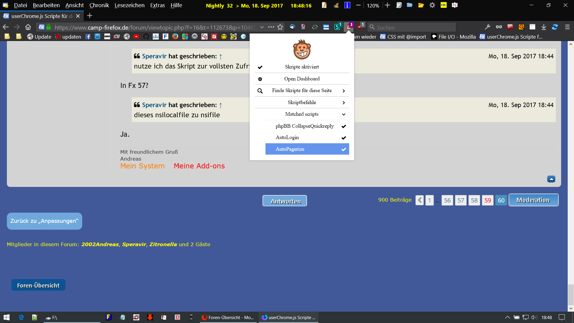 Dieses Script in Violentmonkey bewirkt bei Nutzung, das ich in Nightly aus dem Camp-Firefox-Forum ausgeloggt werde...