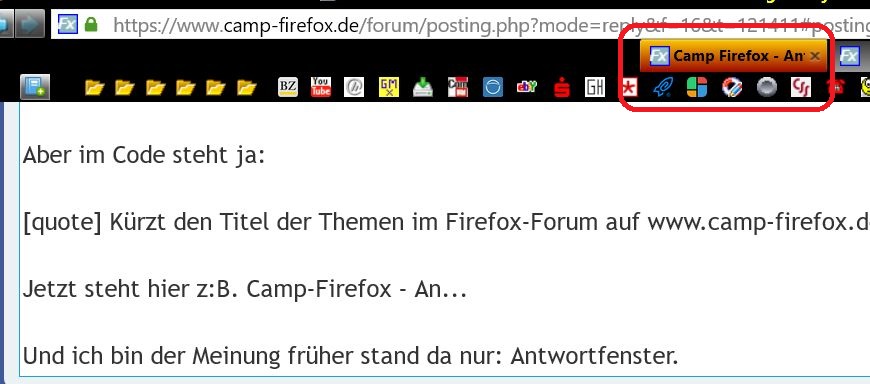 Doch, lässt es sich, aber wie gesagt..keine Funktion mehr bzw. wird immer nur"Camp-Firefox" angezeigt, und nicht der Titel der Seite.