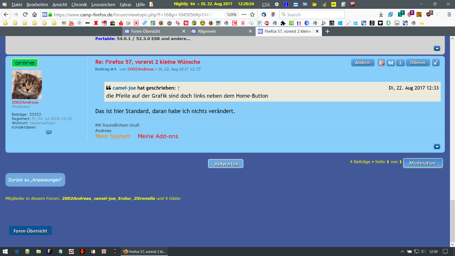 Firefox 57, vorerst 2 kleine Wünsche