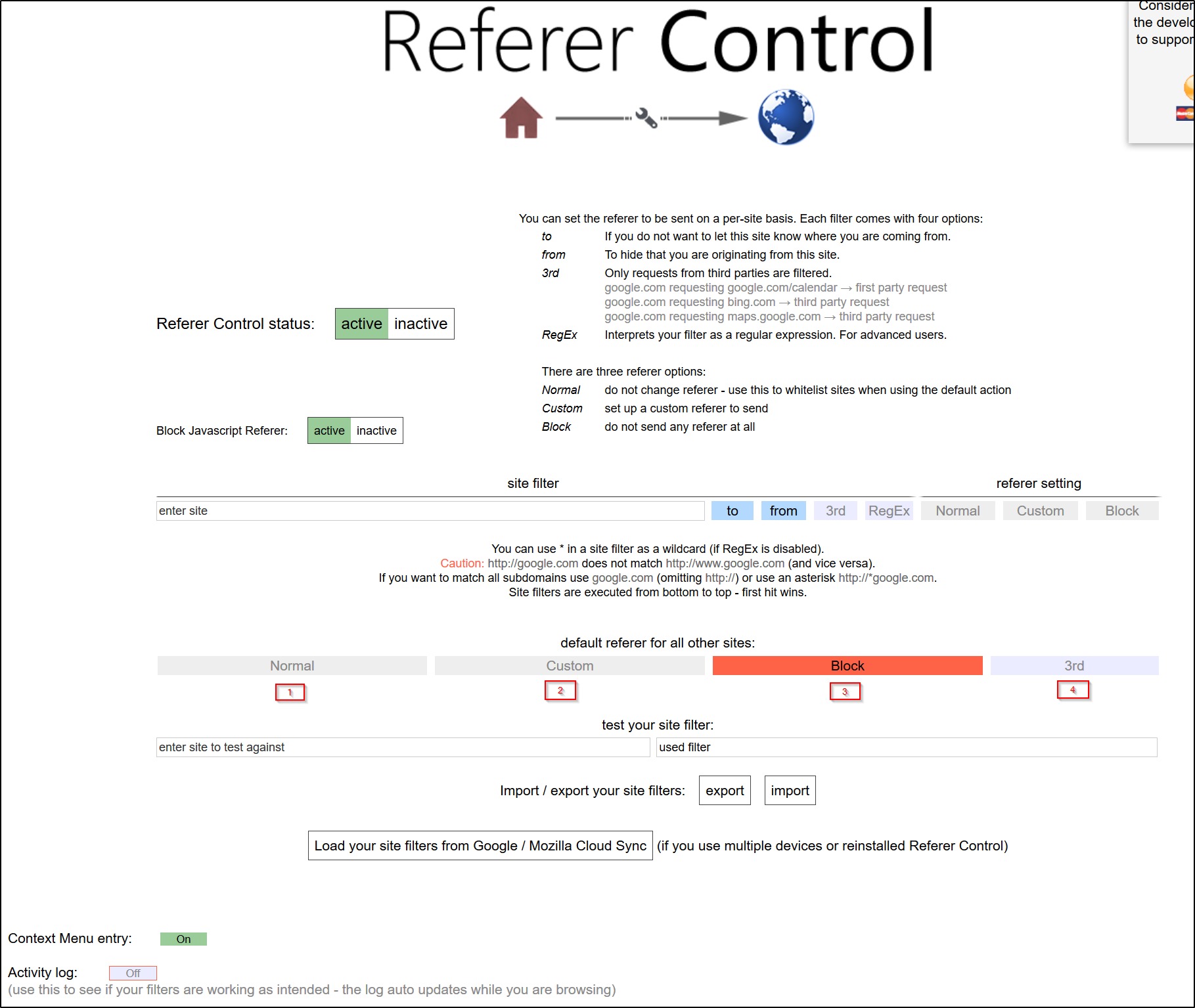 Bis jetzt benützte ich das Addon Toggle Referer. Eine einfache Sache mit drei Schaltmöglichkeiten, Referer weitergeben/blockieren und eine Dritte, die ich nicht begriffen habe.
