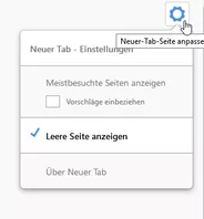 Im Normalfall hast Du auf der newtab-Seite ganz rechts ein Zahnrad. Ein Klick darauf öffnet die Einstellungen.