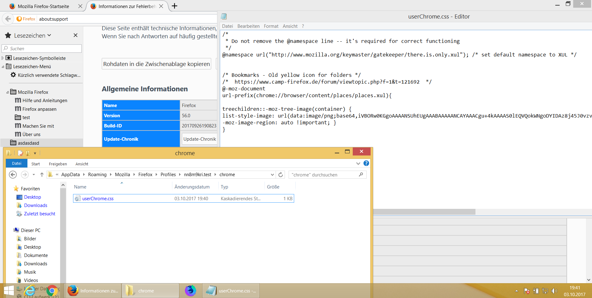 Habe den Chrome Ordner/userChrome.css erstellt. Die Ordner sind im Bibliothek-Fenster danach zwar gelb gefärbt, aber das Design ist es immer noch das neue 56 Version Design.