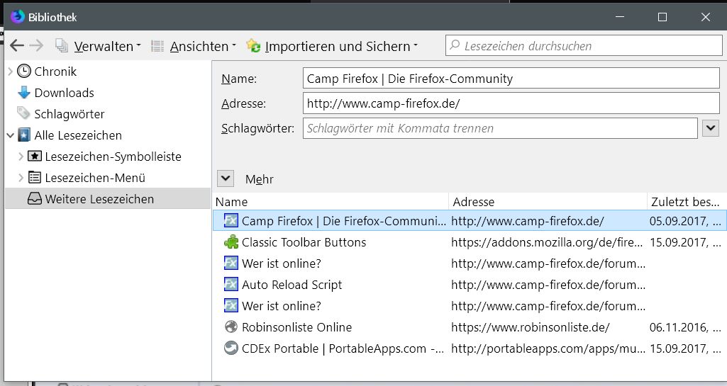 FF57 -Lesezeichen Verwalten - Bibliothek