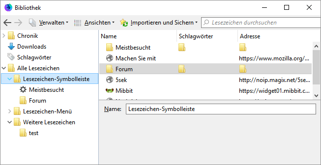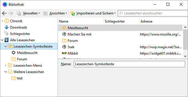 Unter dem Punkt "Lesezeichen verwalten" hingegen sehen sie nun "anders" aus als früher, und zwar so, wie aus dem Screenshot in Beitrag #7 auf der linken Seite ersichtlich und nicht so wie im ersten Screenshot in Beitrag #6 (so sahen sie ja bisher aus).