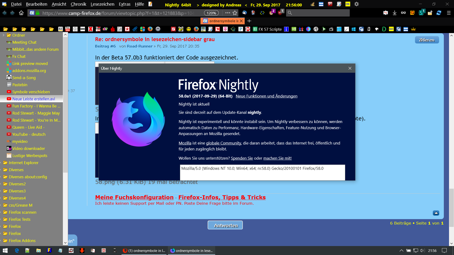 Habe vorhin Firefox gestartet und es wurde wohl ein Update auf 56.0 durchgeführt und jetzt sind links in der lesezeichen-sidebar alle ordner-symbole grau. gehe Ich oben in der Menüleiste auf Lesezeichen so öffnet sich darunter ein Fenster/Menü und hier sind alle Ordner im "schönen" gelb so wie bisher. Ich möchte das aber auch links in der sidebar so haben, so wie es bisher war. Habe Firefox zurückgesetzt und auch mal einen Scan mit dwcleaner gemacht hat alles nix geholfen. wie kriege Ich das wieder hin?