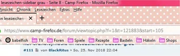 Auch wird mit dem oben erwähnten Code zusätzlich noch andere Icons mit den gelben Ordnericons (bsp. Chronik/Schlagwörter/Alle Lesezeichen/Lesezeichen-Menü usw.) überschrieben aufgrund des "zu" generellen CSS-Selektors. (mag vielleicht den einen oder anderen stören)