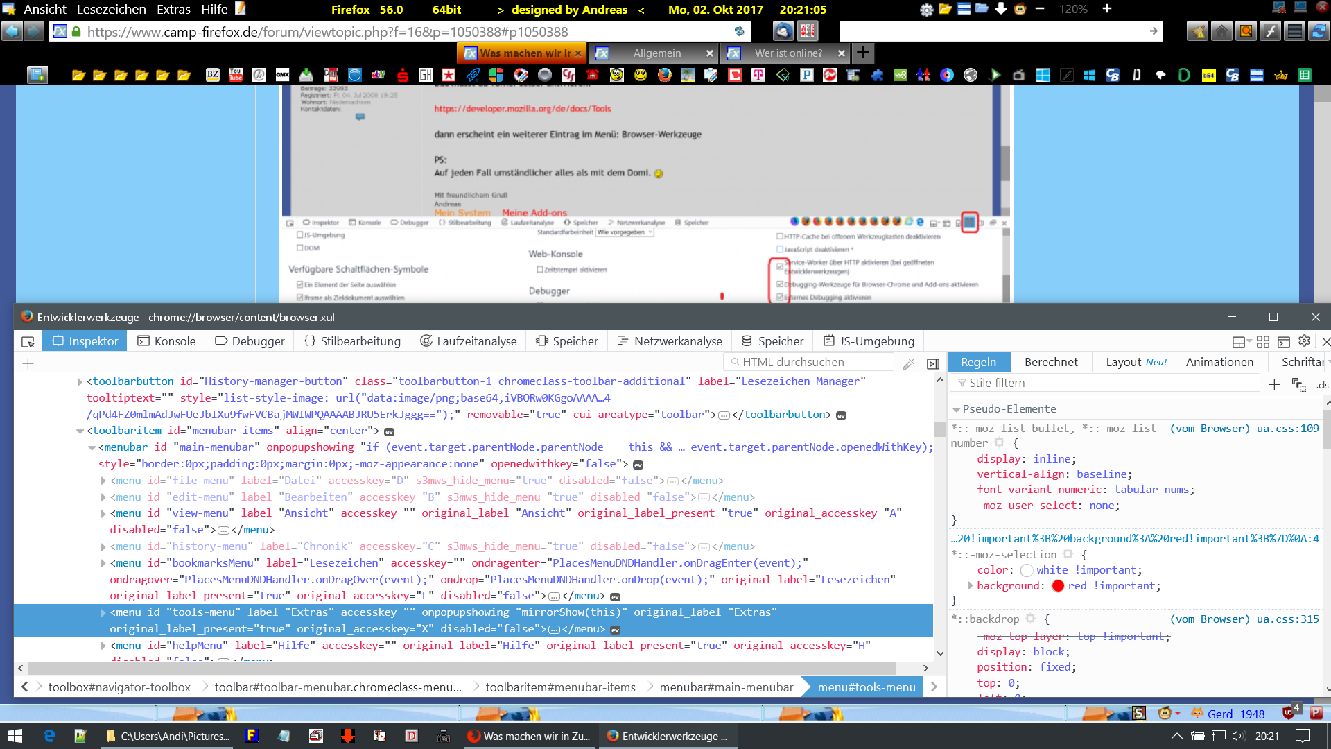 • Hallo Sören, ich glaube so ähnlich hattest Du Dich schon mal geäußert. Aber ich finde da nichts Brauchbares - da bin ich wohl zu blind für... Ich finde immer nur was um Webseiten zu untersuchen, ich möchte aber den Fux selber sehen um z.B. die IDs und Klassen zu finden um die verbauten Elemente in Aussehen und Funktion anzupassen. Da komme ich so nicht weiter...