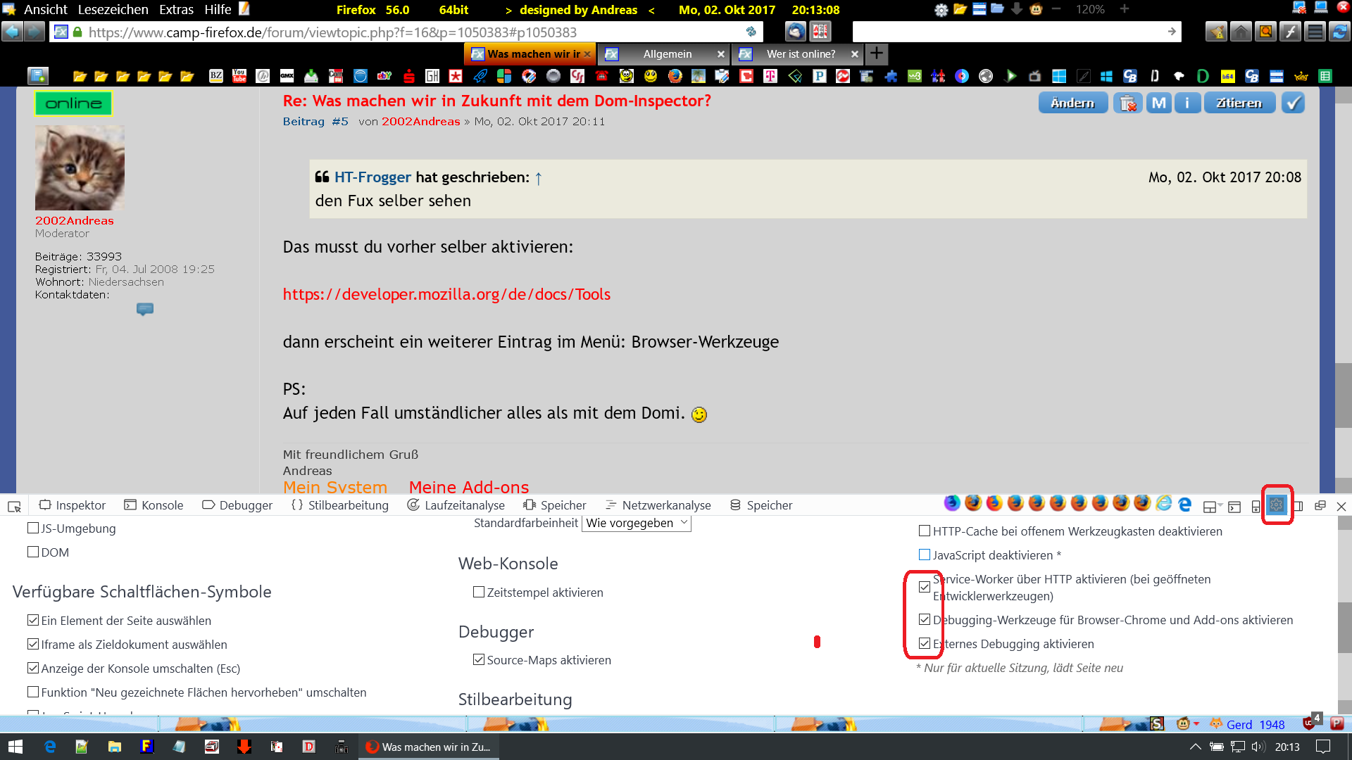 • Ich nutze hier ein Script zum Aufrufen der Browser-Werkzeuge, und da erscheint diese Meldung erst gar nicht mehr.