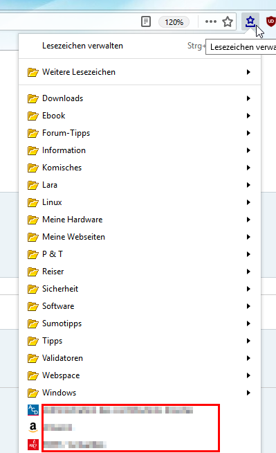 Aber leider: Sobald ich Stylish (also das alte, bisherige Add-on deaktiviere) sind die Lesezeichen in einer langen Liste statt wie bisher in Spalten angezeigt und "Bookmarks Menu in Multiple Columns" ist auch aus der Liste Benutzer-Styles (unter Extras ---> Add-ons) verschwunden (genau genommen: es gibt des Eintrag "Benutzer-Styles" bei mir dann gar nicht mehr, weil ich ja nur einen solchen Style in Verwendung hatte). Im neuen Add-on (also in "Stylus") scheint "Bookmarks Menu in Multiple Columns" aber weiterhin als (aktivierter) Style auf (bzw. ist er kurz danach auch von dort wieder verschwunden). :?