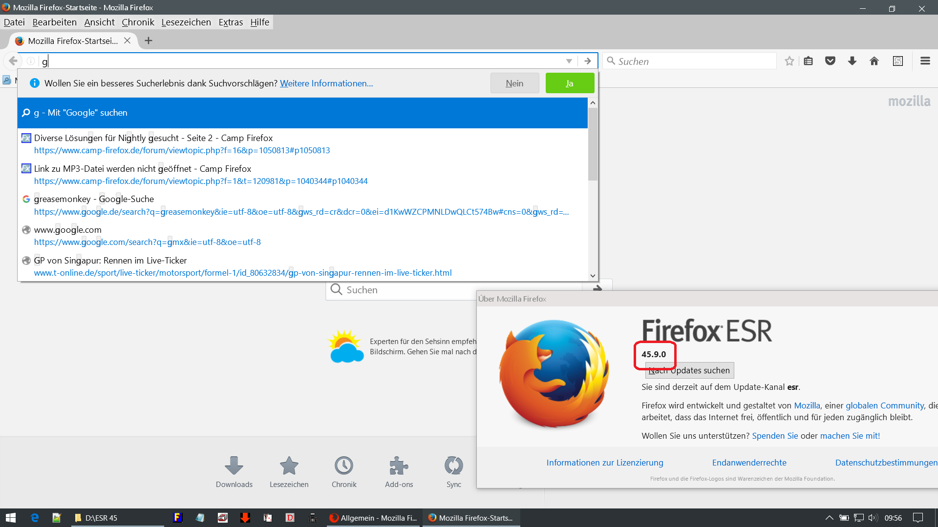 Ich bin dir zwar nicht die geringste Rechenschaft schuldig, informiere dich aber trotzdem darüber, dass ich Firefox in der aktuellen Version 56.0 nutze. Auch hier gilt: Wenn du keine Menüleiste hast/verwendest, so ist das deine Sache. Du brauchst dich aber deshalb nicht über meine Firefox-Version beklagen bzw. Vermutungen darüber anstellen, ob ich ihn überhaupt nutze.