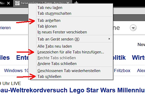 "Tab anheften" würde ich gern weiter runter verschieben, "LZ für alle..." auch und z.B. "Tab schließen" ist für mich überflüssig, kann also komplett weg.