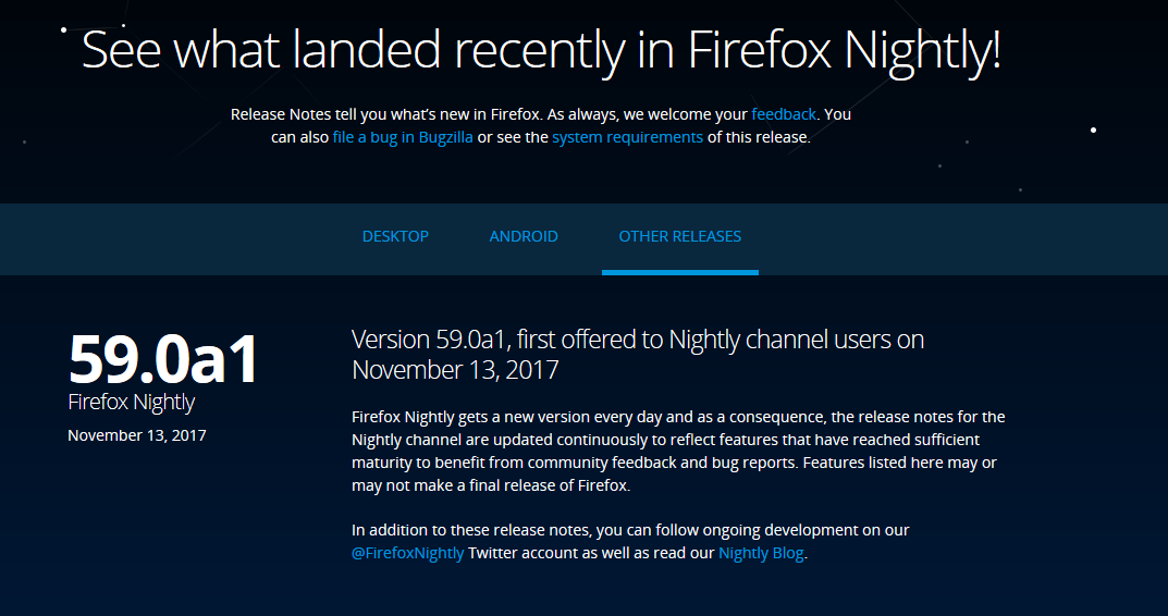 Nightly 59.0a1 (2017-11-13) (64-Bit) ist auch neu im Rennen