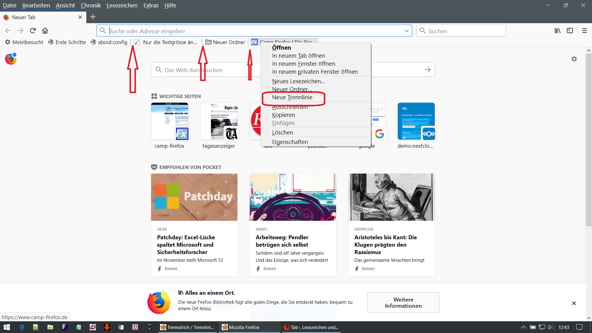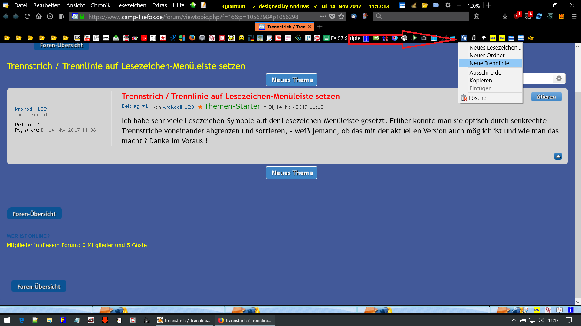 Trennstrich / Trennlinie auf Lesezeichen-Menüleiste setzen
