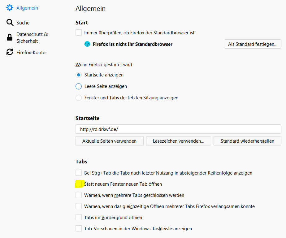 Ggf. den Haken dort entfernen und Firefox neu starten..