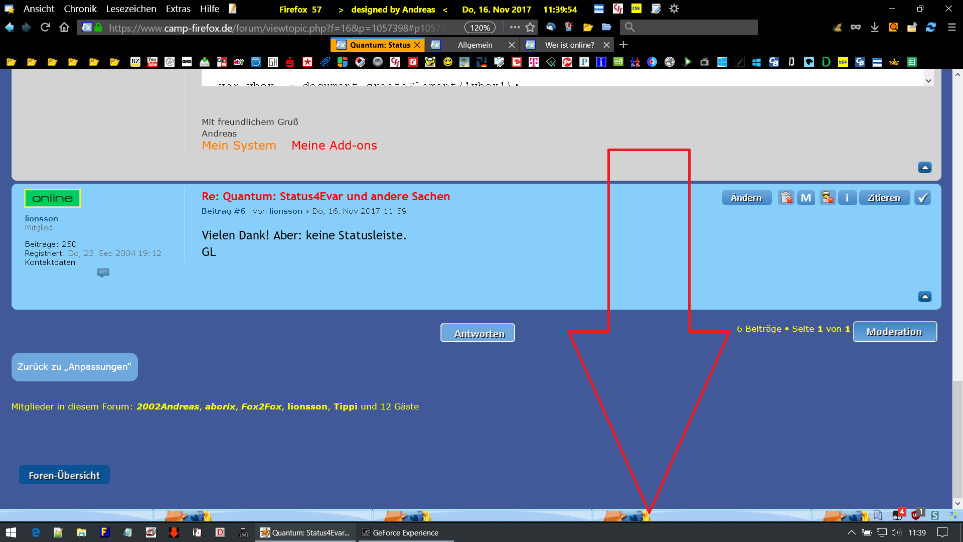 Ich habe nun eine Datei Statusbar.js mit dem Code aus #5 erstellt und im Unterordner Chrome in meinem Profilordner gespeichert.