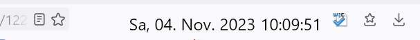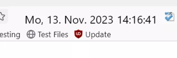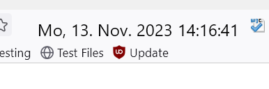 Alles anzeigen/* Uhr in Nav-Bar */ function doDatUhrCallback() {try{doDatUhr();}catch(ex){} } function convertUTCDateToLocalDate(date) { var newDate = new Date(date.getTime() + date.getTimezoneOffset() * 60 * 1000); var offset = date.getTimezoneOffset() / 60; var hours = date.getHours(); newDate.setHours(hours - offset); return newDate; } function doDatUhr() { var days = ["So", "Mo", "Di", "Mi", "Do", "Fr", "Sa"]; var months = ["Jan", "Feb", "März", "Apr", "Mai", "Juni", "Juli", "Aug", "Sep", "Okt", "Nov", "Dez"]; window.setTimeout(doDatUhrCallback, 1000); var D = new Date(); var day = days[D.getDay()]; var month = months[D.getMonth()]; var year = D.getFullYear(); var hour = D.getHours(); var minute = D.getMinutes(); var second = D.getSeconds(); var date = day + ", " + (D.getDate() < 10 ? "0" +D.getDate() : D.getDate()) + ". " + month + ". " + year + " "; var time = (hour < 10 ? "0" +hour : hour) + ":" + (minute < 10 ? "0" +minute : minute) + ":" + (second < 10 ? "0" +second : second); var timestr = " " + date + time + " "; var text = ""; var status = document.getElementById("statusbar-clock-display"); status.setAttribute("value", text + timestr); if (hours < 6 || hours > 20) { status.setAttribute("style", "color: white"); } else { status.setAttribute("style", "color: white"); } status.setAttribute("style", clockstyle); } var ClockStatus = document.getElementById("urlbar-container"); var ClockLabel = document.createXULElement("label"); ClockLabel.setAttribute("id", "statusbar-clock-display"); ClockLabel.setAttribute("class", "statusbarpanel-text"); ClockLabel.setAttribute("style", "padding-top:8px!important;padding-left:58px!important;font-size:17px;font-weight:normal;color:black!important;"); ClockStatus.parentNode.insertBefore(ClockLabel, ClockStatus.nextSibling); doDatUhr(); -