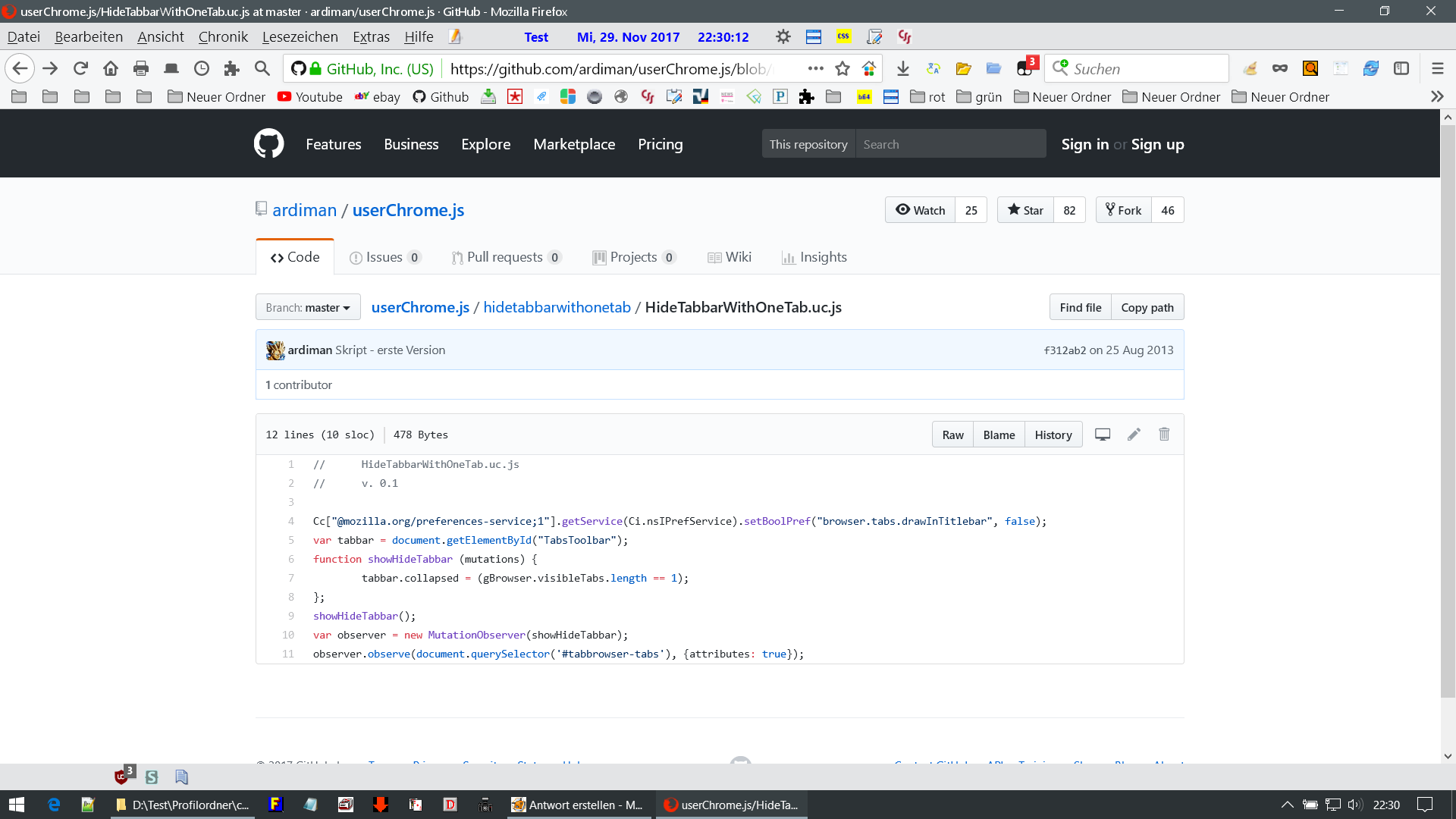 Ich habe schon einiges vom Design in Firefox 57 in der userChrome.css verändert. Mir ist aber schleierhaft, wie ich verhindern kann, daß ein einziger Tab angezeigt wird, wenn kein weiterer Tab geöffnet ist. Vor allen Dingen stört mich, daß schon beim Start "Neuer Tab" angezeigt wird. Diesen Tab brauche ich nicht, er ist bei mir leer. Ich habe alles, was standardmäßig dort angezeigt wird, deaktiviert. Ich muß jedesmal, wenn ich eine Bookmark angeklickt habe, den "Neuer Tab" schließen.