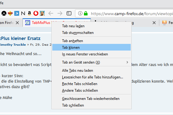 Ich vermisse die die Einstellung von TMP+, dass man mit einem Doppeklick einen Tab duplizieren konnte. Weiss jemand ob es etwas alternatives dazu gibt?