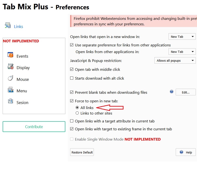 Tab Mix Plus WebExtensions is in its early development phase. Current version contain only "Links" features form legacy Tab mix plus.