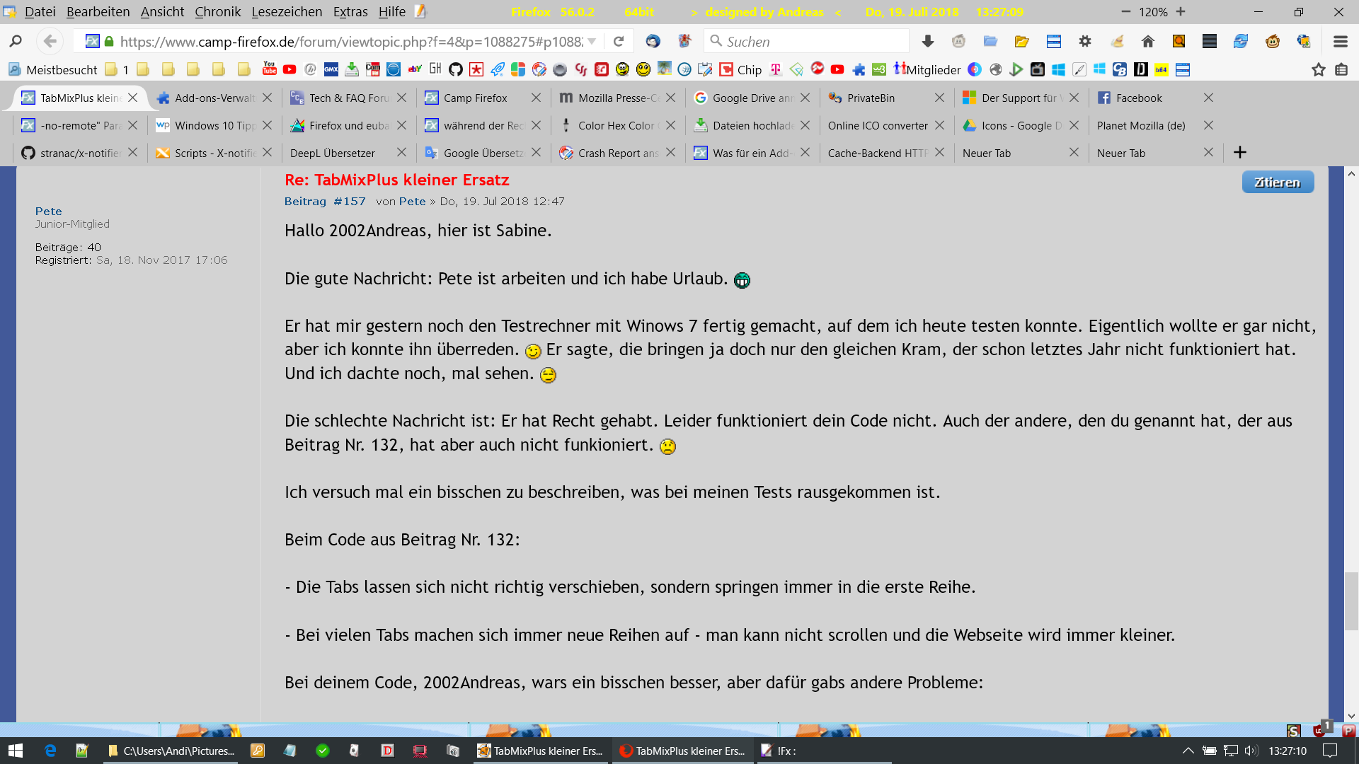 Ich z.B. habe noch nie mehr als eine Reihe Tabs benötigt, und ich vermute mal, das geht den meisten Nutzern vom Fx so.