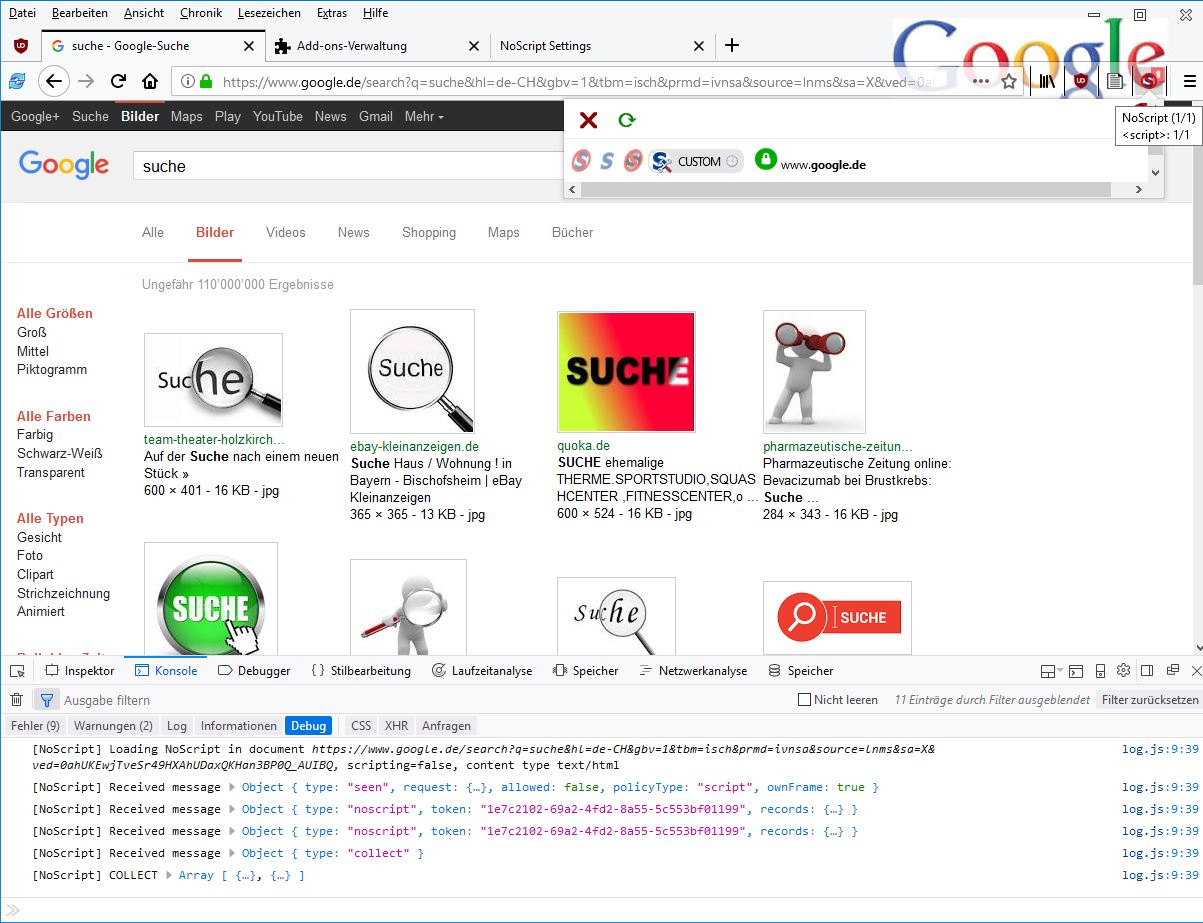 - Die für dich neutrale (oder vielleicht gute?) Nachricht: ich selbst habe auch mit FF 57 (und NoScript neu) die Suchergebnisse genau so im Browser, wie du es dir vorstellst und es in deinen Screenshots zu sehen ist.