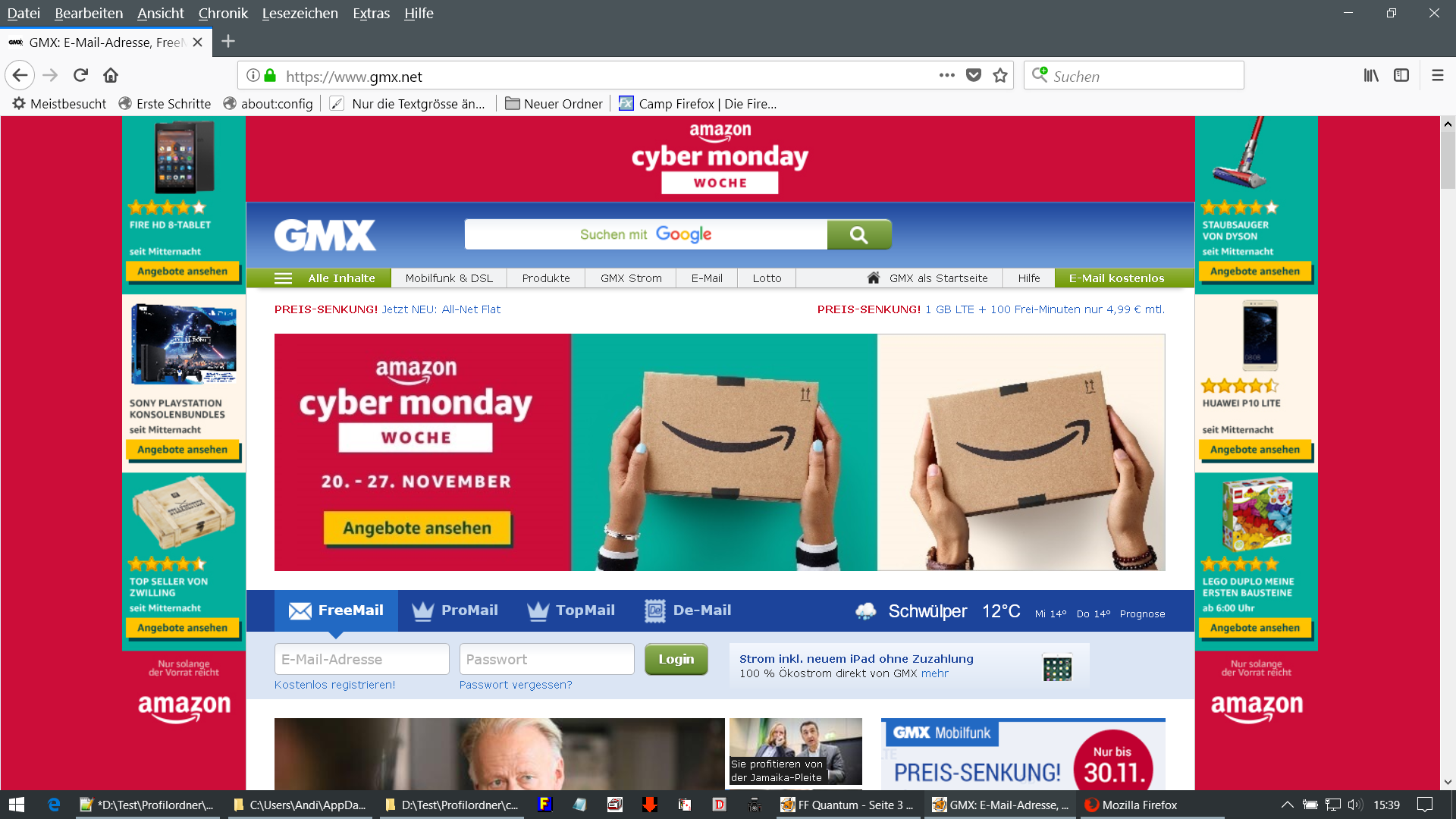 ist möglich, ich dachte auch schon daran. Ich kenne aber keine Möglichkeit um GMX zu aktualisieren. Es trat auf, als die FF Version 56 installiert wurde.