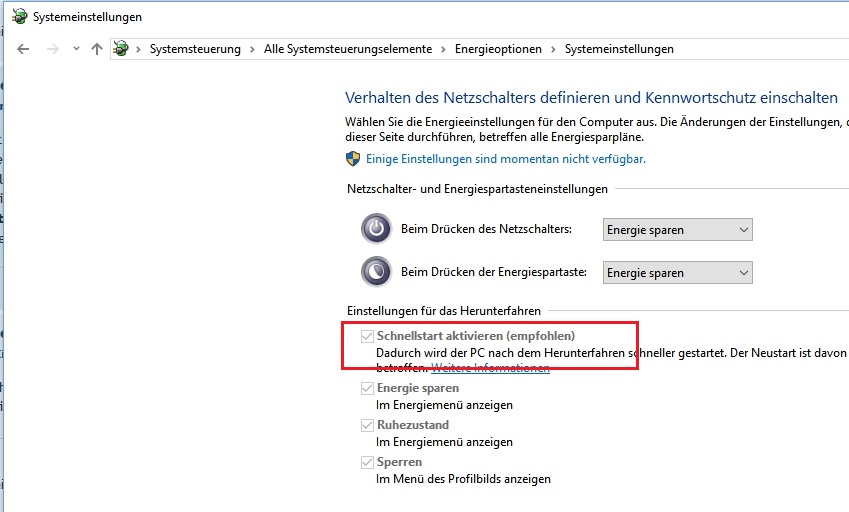 wenn du Windows 10 hast und unter hier den Schnellstart aktiviert hast, reicht dass nicht aus.