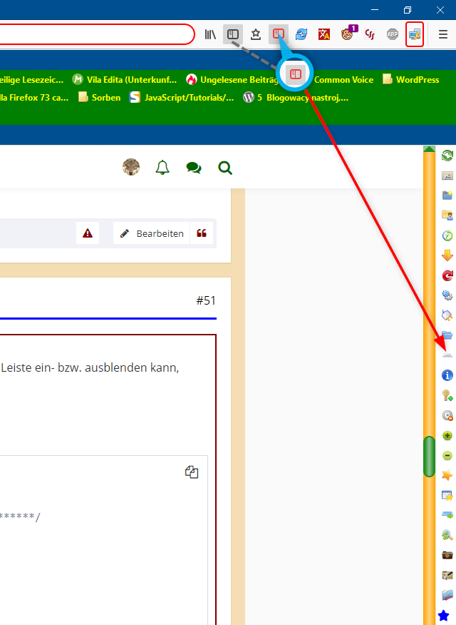 So, nachdem ich nun beim richtigen Skript bin: Bei mir ist es genau umgekehrt, der Button ist da und lässt sich auch umschalten, aber die Leiste sehe ich generell nur im Anpassen-Fenster.
