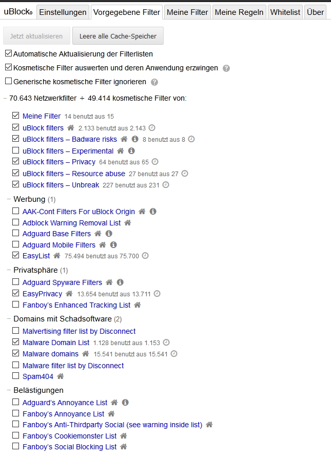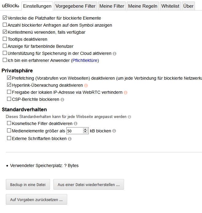 3.) Im ublock-Einstellungsfenster (siehe Screenshot)