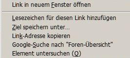 Desweiteren würde ich gerne noch "Link in neuem Tab in Umgebung öffnen" und "Lesezeichen für diesen Link hinzufügen" herauslöschen.