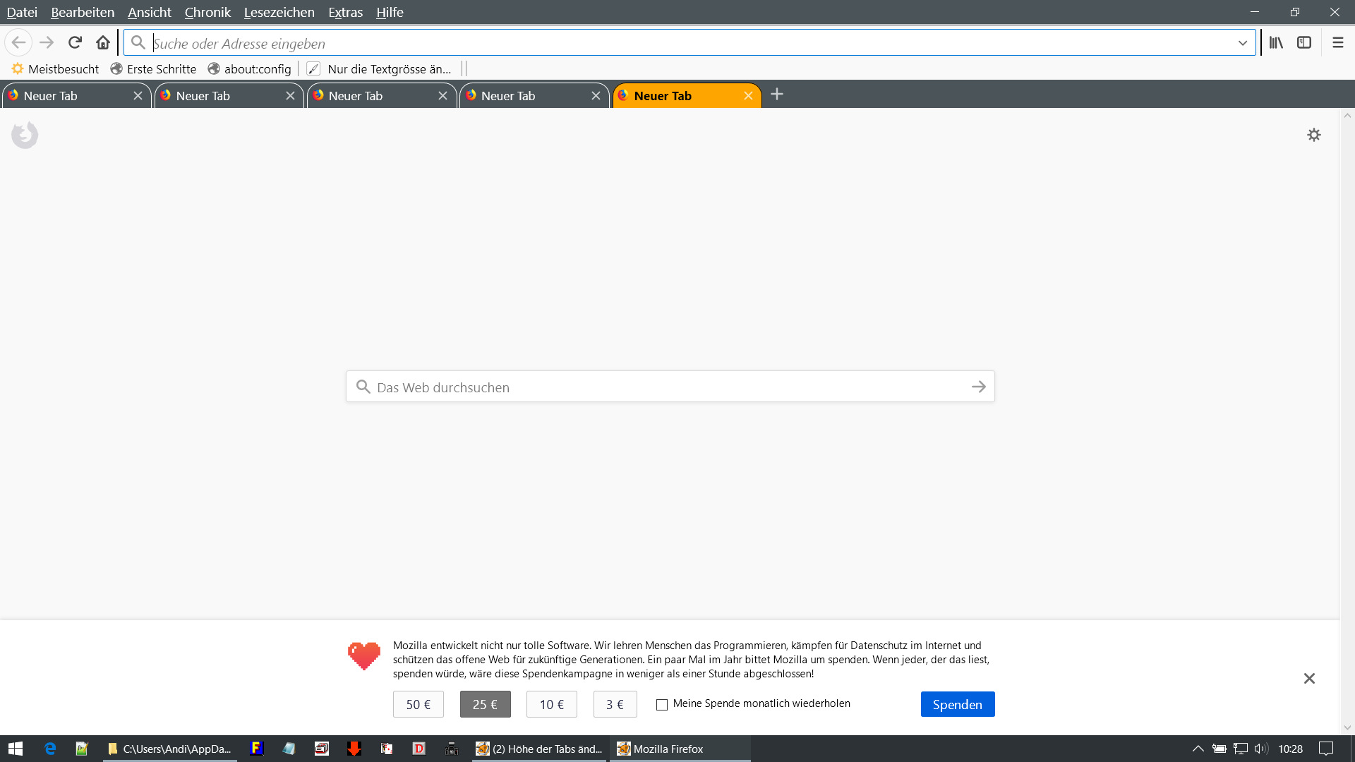 Es muss aber an diesem Code liegen, denn wenn ich den ganzen Code aus der userchrome lösche, passt die Höhe,