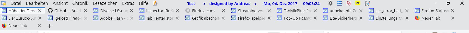 Eigentlich ist es so optimal. Nur, die mehrzeilige Tableiste ist weg, es gibt auch keine Scrollbox. Jeder zusätzlich geöffnete Tab verschwindet sozusagen im Nichts. Im möchte aber, dass immer 2 Zeilen angezeigt werden, ohne Scrollbox.