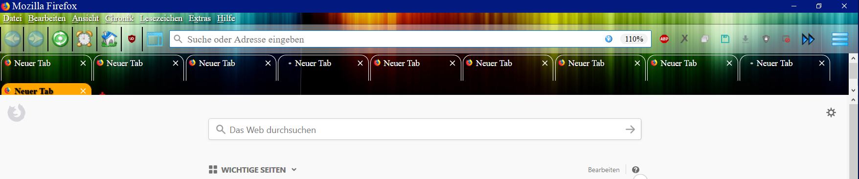 Eigentlich ist es so optimal. Nur, die mehrzeilige Tableiste ist weg, es gibt auch keine Scrollbox. Jeder zusätzlich geöffnete Tab verschwindet sozusagen im Nichts. Im möchte aber, dass immer 2 Zeilen angezeigt werden, ohne Scrollbox.