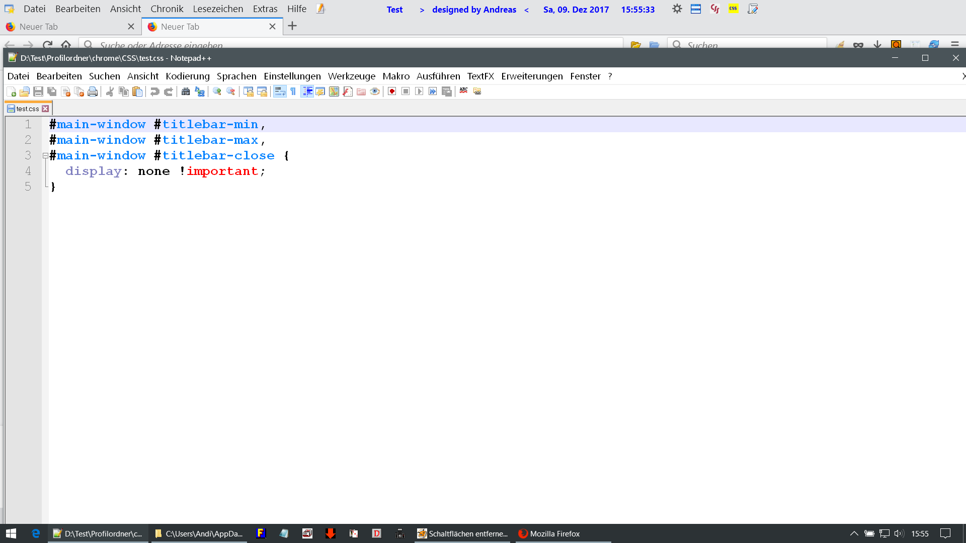 Wenn die Datei userChrome.css heißt sollte es funktionieren, oder ist das kleine c nur ein Schreibfehler?