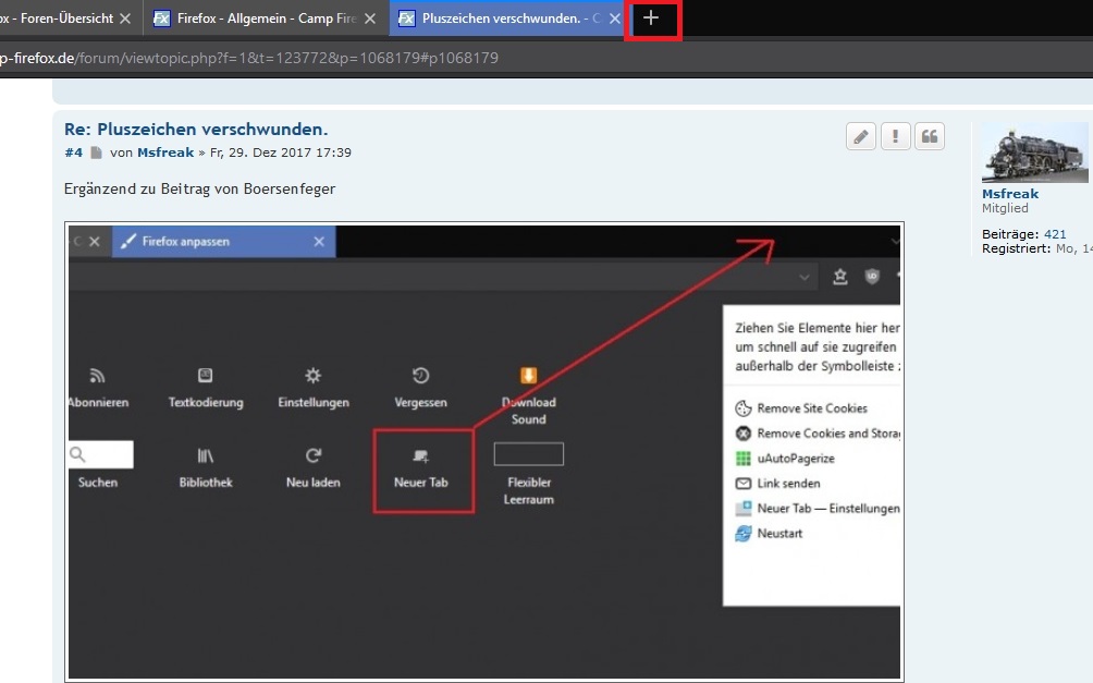 bisher öffnete sich der Firfox bei mir mit der voreingestellten Firefox-Starseite. Danach war ein Tab mit einem Plus-Zeichen. Wenn ich das anklickte, kam die Group Speed Deal Seite mit den 8 eingerichteten Bildern.