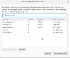 4. Firefox gestartet, jetzt werden folgende Cookies angezeigt: