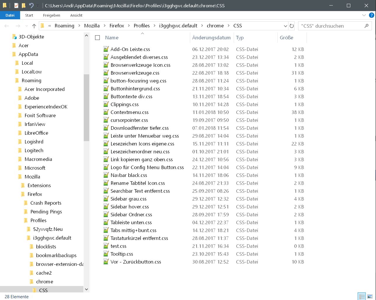ist ja sonst immer der selbe name beim ordner? (userChrome) css der dateiname.