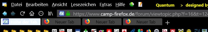 Es gibt einen Höhenunterschied der Tabs bei diesen beiden Firefoxis: