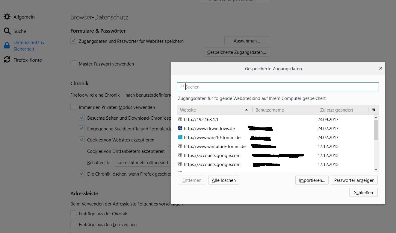 • Da waren sie leider nicht, das war mein erster Verdacht. Ich habe jetzt eine key3 und eine gleichgroße key4 im profilordner vorhanden. Außerdem eine logins.json und eine logins.json.corrupt