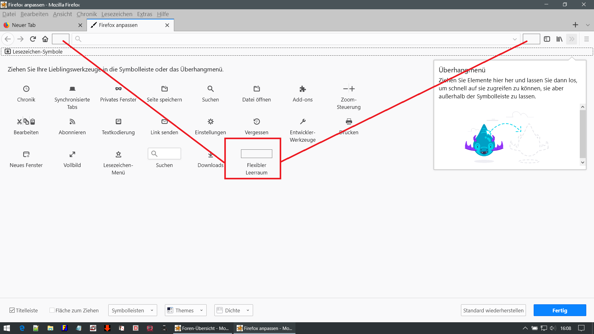 der Code hat funktionirt, die Adressleiste ist schmaler, aber auf den dadurch frei gewordenen Platz können keine Symbole verschoben werden.