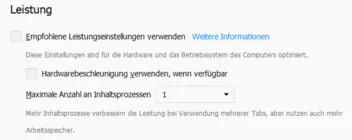 Ausserdem rate ich dir die Hardwarebeschleunigung wieder zu aktivieren falls du nicht konkrete Probleme damit hattest.